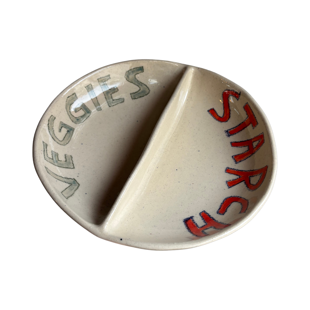 Size: Varies based on the handmade product but plates will be around 10 inches wide by 2- 2 inches tall with a divider.